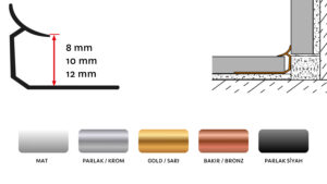 Fayans Profilleri ; Seramik, Granit veya Fayans kaplamaları gibi uygulamalarda bütün iç ve dış köşelerde dekoratif bir görüntü oluşturarak, Kaplamalarınızı darbelere karşı korur ve kırılmasını önler. Uygulaması oldukça kolaydır. Yapı kimyasalları veya seramik yapıştırıcıları ile uygulanır. Bütün iç köşelerde ve dış köşelerde kullanılabildiği gibi Düşeyde veya Yatayda da uygulanabilir.